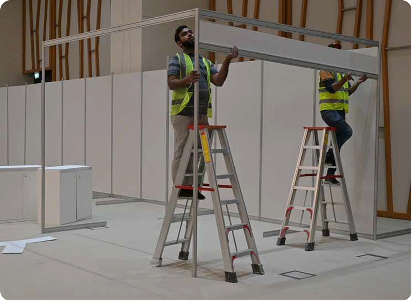 Mass Production has a longstanding track record of successfully delivering shell scheme systems for exhibitions and events of all sizes. With years of experience, we understand the unique requirements of exhibitors and event organizers, enabling us to provide tailored solutions that ensure smooth execution and high-quality results.Our in-house capacity provides 4,000 sqm of shell scheme.