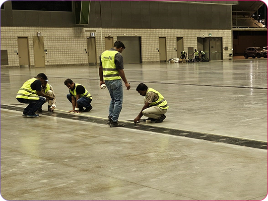 Align with the venue>s guidelines for floor marking materials and safety standards.